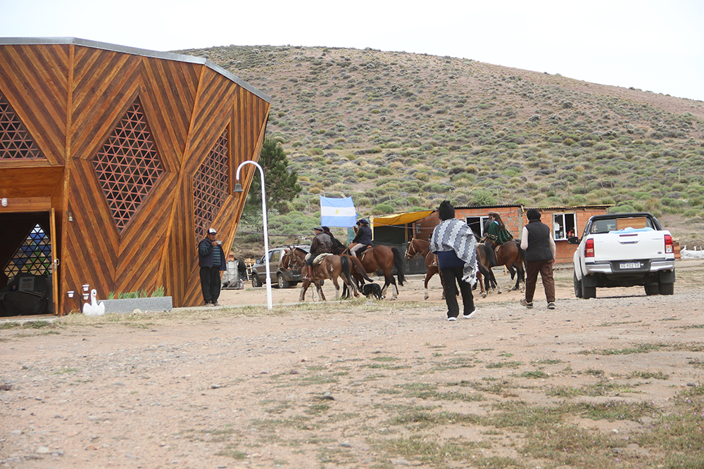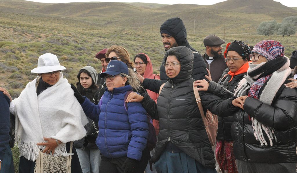 La segunda actividad, en el marco de las celebraciones interculturales con la comunidad mapuche fue el lunes 17 de noviembre. La jornada inició temprano en el paraje San Ignacio. Hasta allí llegaron el centenar de jóvenes de América que estaba participando del Retiro, como los cientos de peregrinos que llegaron de distintas ciudades de la Patagonia y de Buenos Aires para las celebraciones interculturales. Recibidos por la familia Namuncurá, se inició la peregrinación hacia el Kultrum. Adelante iba la escolta de jinetes. Detrás, los restos del P. Antonio Mateo (1929-2021), salesiano misionero español que por más de 40 años vivió entre los mapuches y fue uno de los propulsores de que los restos de Ceferino Namuncurá vuelvan a las tierras de su familia.