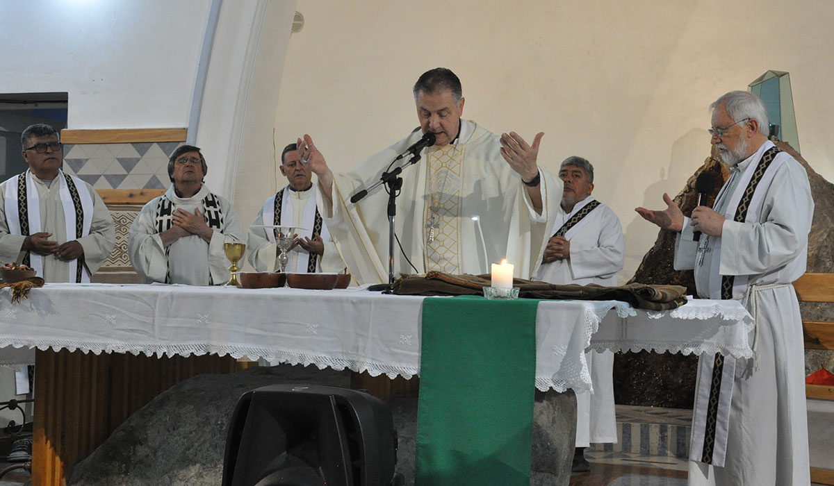 Y agradeció: “En nombre de todos mis hermanos salesianos, y con permiso del obispo y de la Iglesia en esta tierra, quiero agradecer al pueblo mapuche y al pueblo tehuelche que abrieron las puertas de su cultura, de su espiritualidad, de su tierra. Ellos y ustedes enseñaron a los misioneros a caminar en este territorios, a escuchar el viento, a respetar la tierra, a saber interpretar, a valorar la palabra, a vivir en la comunidad. Este aniversario nos invita a recordar con sinceridad. Hubo luces y hubo sombras, pero hubo también innumerables gestos de cariño, de amistad, de fraternidad, de encuentro real y verdadero, de diálogo, de escucha. Ante el Señor declaramos que creemos en la verdadera fraternidad. Recordamos al Papa Francisco, su última encíclica, Fratelli Tutti, hermanos todos, fraternidad y comunión. Queremos caminar todos juntos como hermanos siguiendo a Cristo Jesús. La misión es hoy, por tanto escuchar, acompañar, defender la vida, cuidar la propia identidad para seguir caminando juntos”.